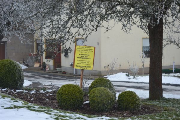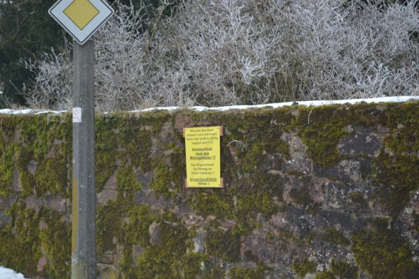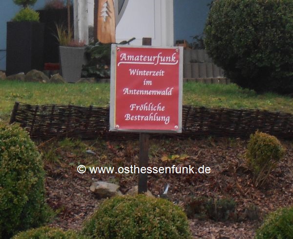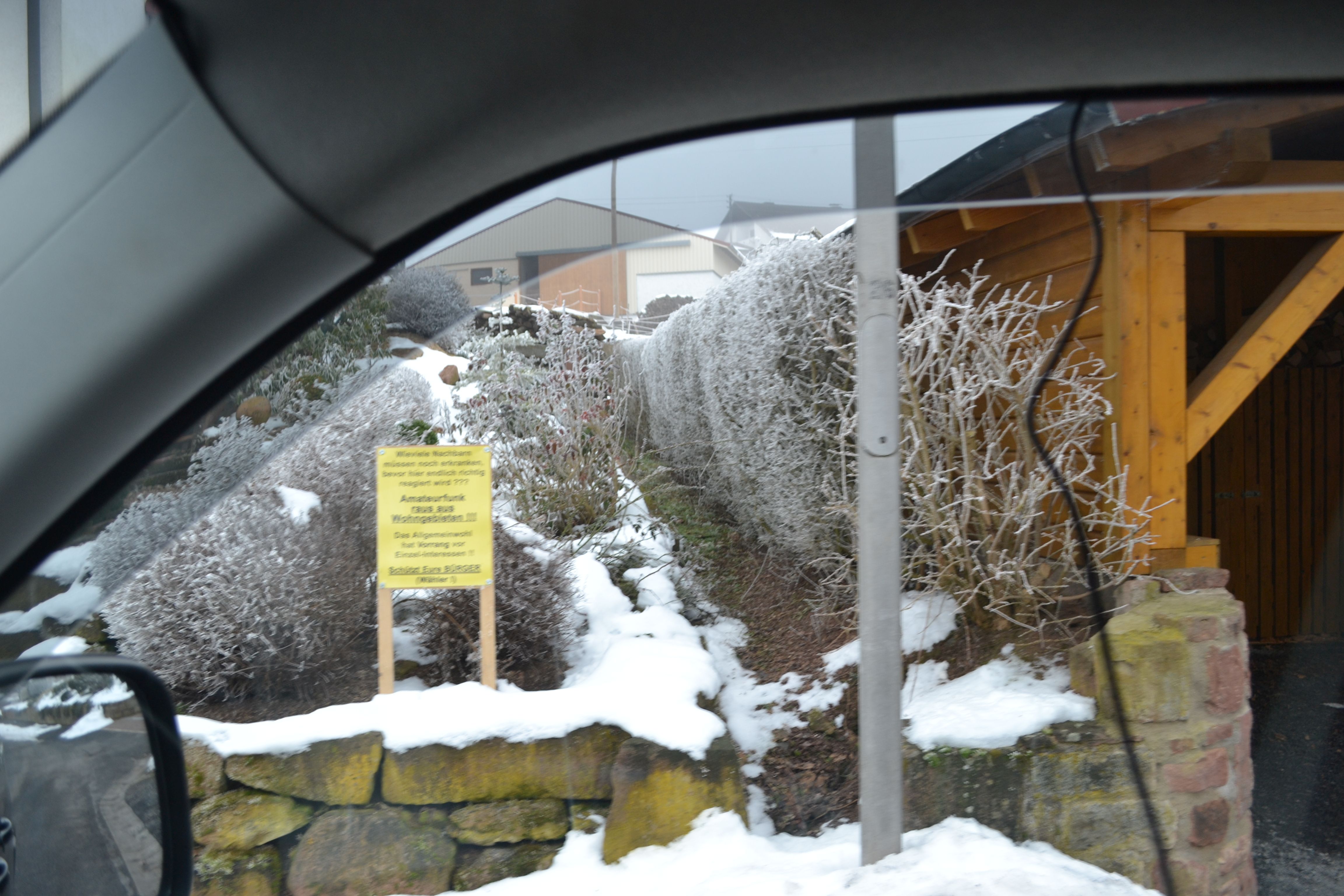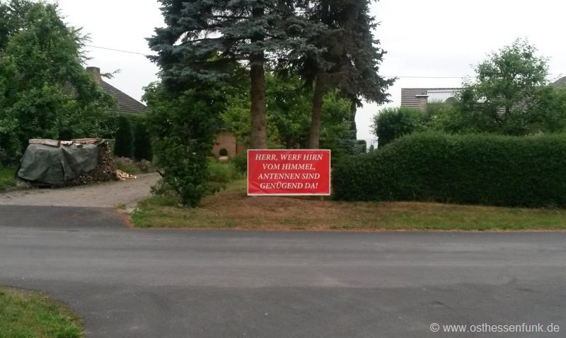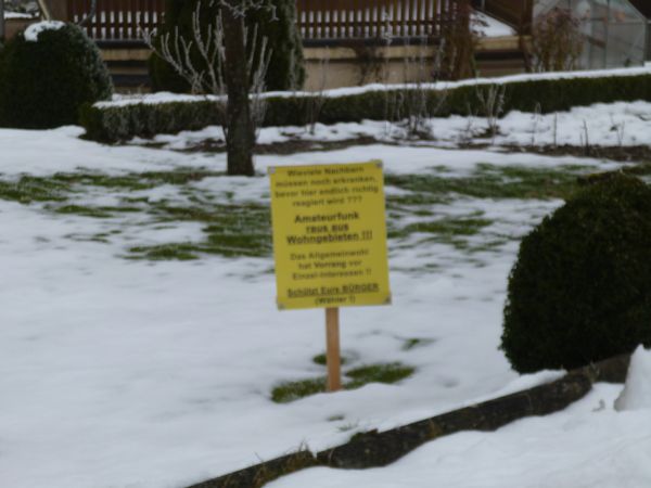 Das neue Schild steht auf dem direkten Nachbargrundstück der Funkamateure. Die Nachbarin,