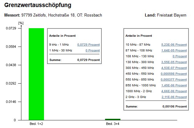 Die Bundesnetzagentur stellte am 23.07.2015 einen abschließenden Bericht über die EMV-Langzeitmessung in Zeitlofs-Roßbach auf ihrem EMF-Portal online: